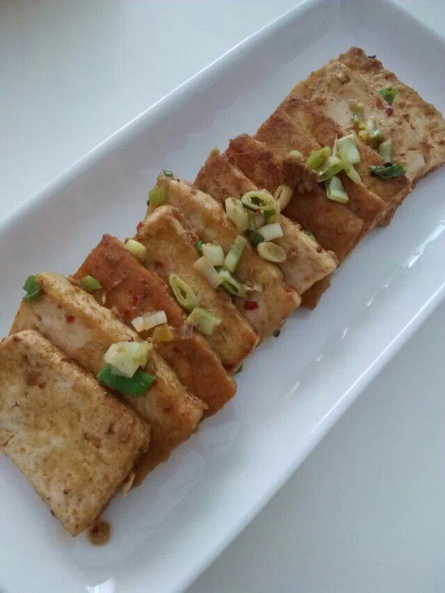1:把豆腐切块,锅放半锅水,放盐2茶匙,将豆腐中火煮10分钟,让豆腐凝固一下和有点底味;