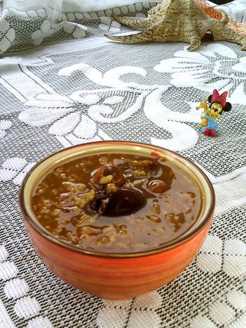 莲子30克;红枣10枚;桂圆肉15克;糯米60克;