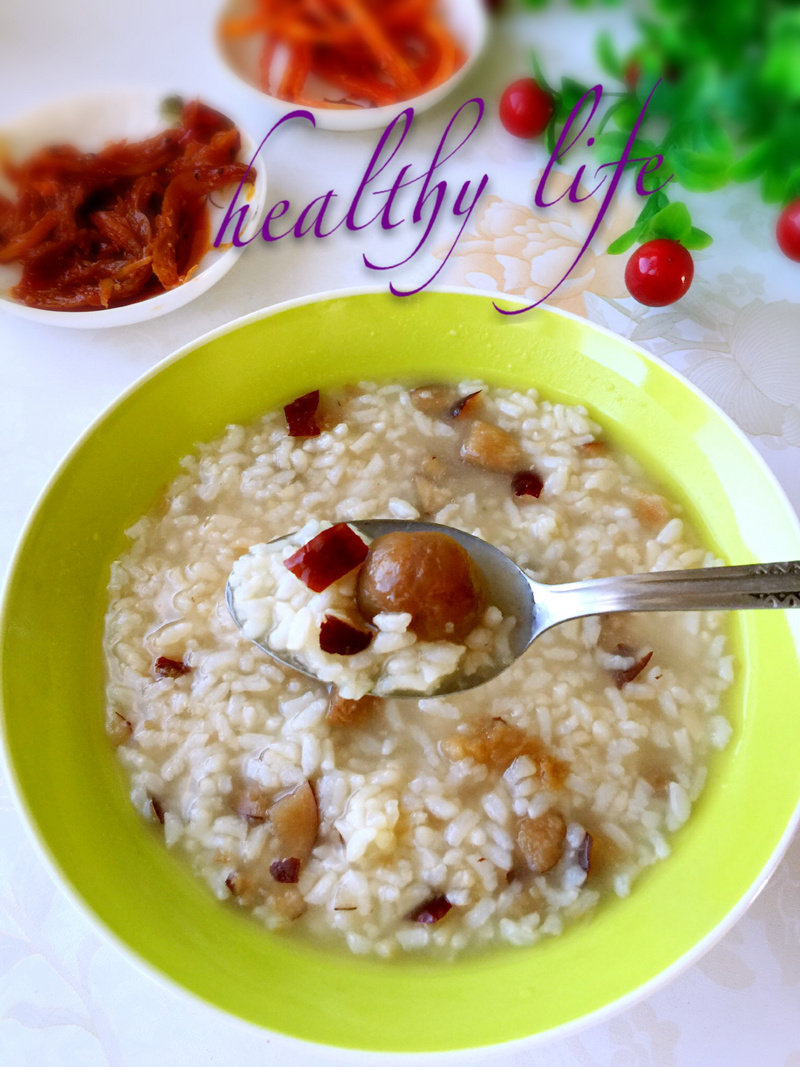 桂圆肉也可以不切碎,整粒洗净入锅。煮粥过程中需不时用勺沿锅底搅拌,以防糊锅。