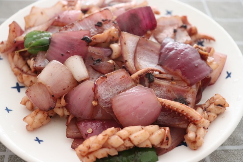 鱿鱼炒洋葱是一道家常快手菜,鲜香脆嫩,营养均衡。做法简单:先将鱿鱼处理干净切花刀,焯水后卷曲成卷;洋葱切丝爆香至透明,再下鱿鱼猛火快炒,调入酱油、盐等调味,最后勾薄芡即可。成菜鱿鱼弹牙,洋葱清甜,两者交融的香气令人食欲大开。