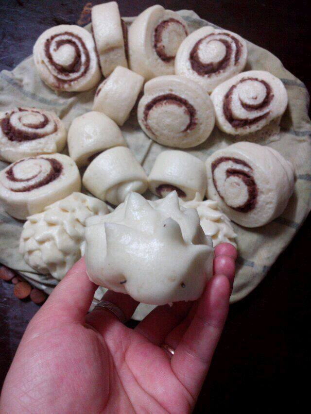 7:随便做的造型,豆砂卷和有爱的小刺猬。发好的面团要再次揉出空气,然后分出小剂子,就可以做自己想要的造型了。做好后,凉水上锅,放上篦子,放入馒头,盖上盖醒15-20分钟。(别开火馒头时)