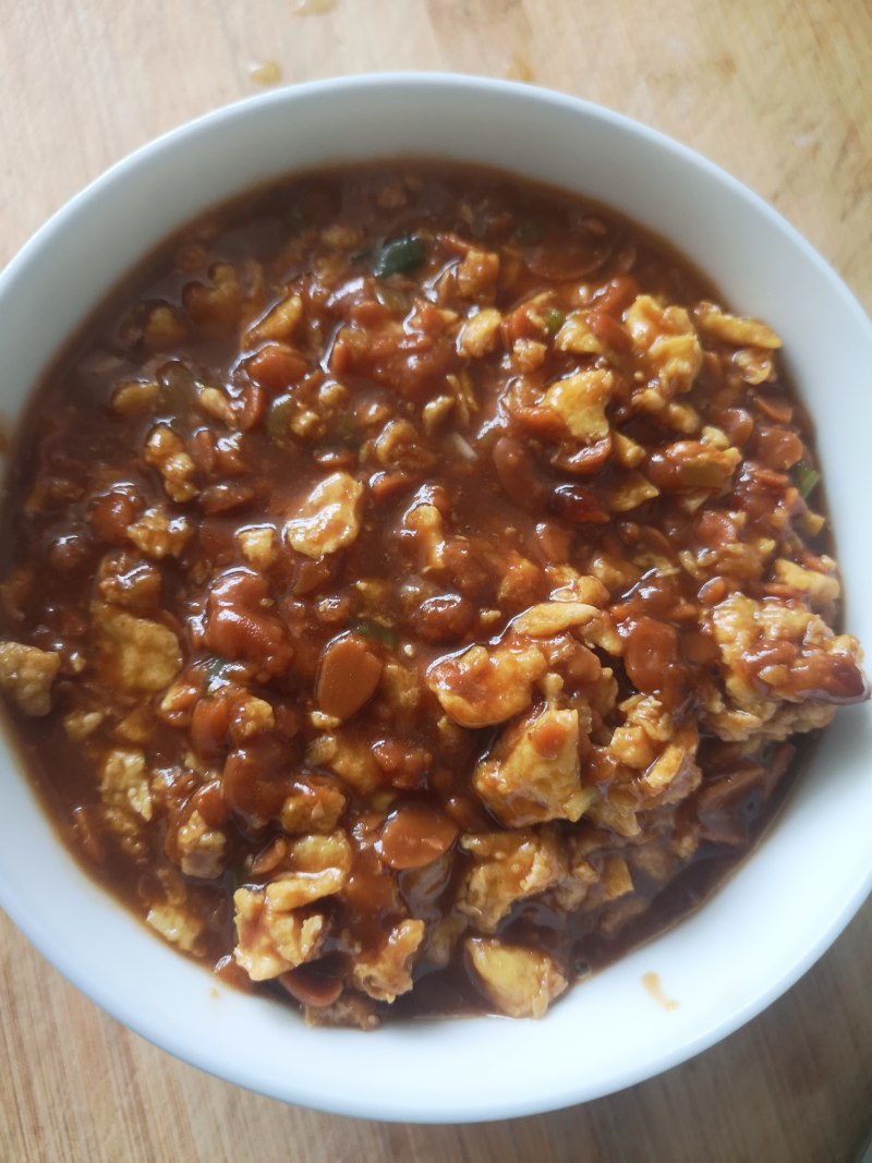 3:鸡蛋8成熟,放豆瓣酱。
