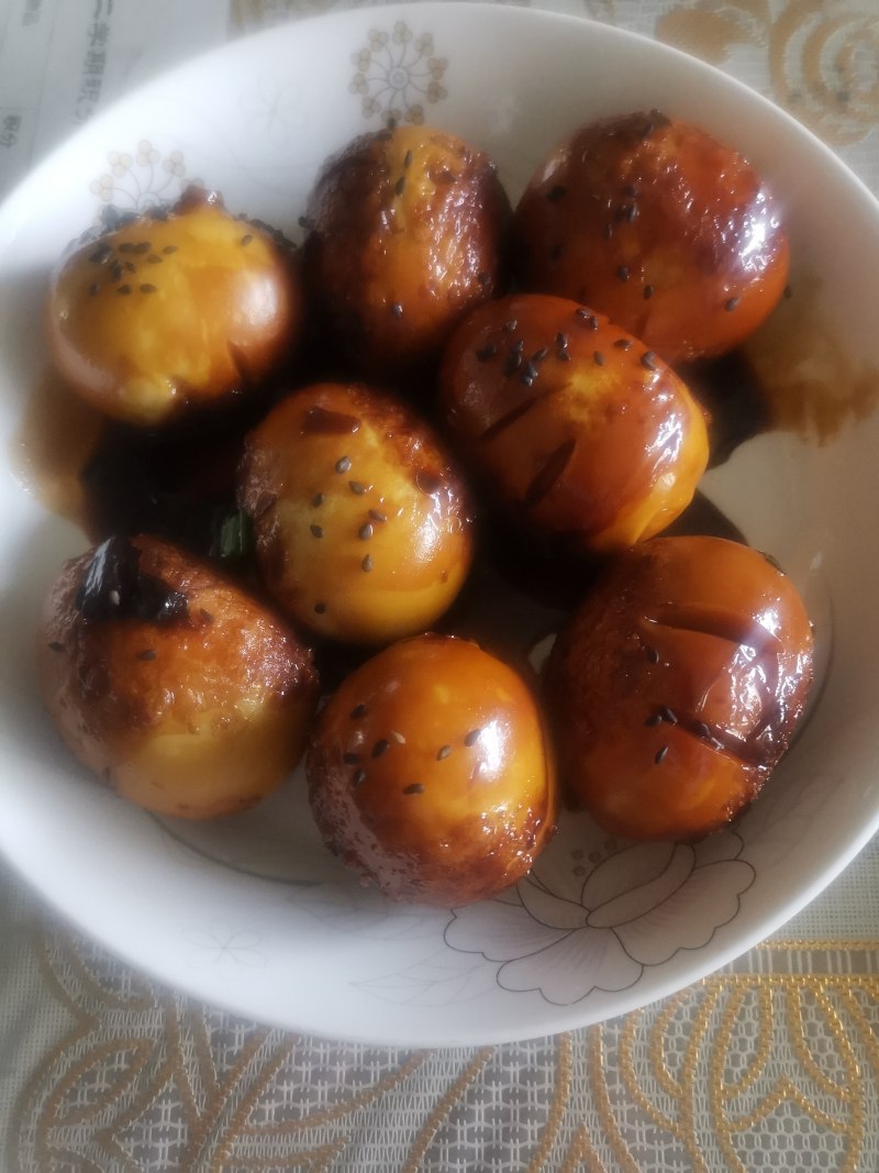 5:鸡蛋煮至半干身时,大火收汁即可关火。如果嫌颜色浅,可适当多加点老抽进去一起收汁。