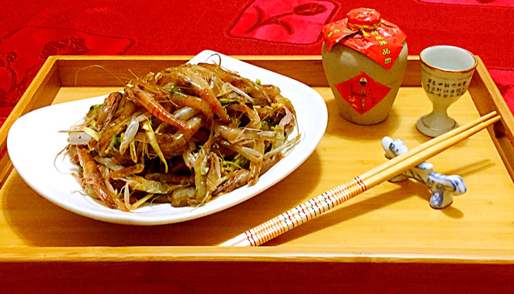 1:把嘎巴虾捡去杂鱼,冲洗干净,控干水分备用。