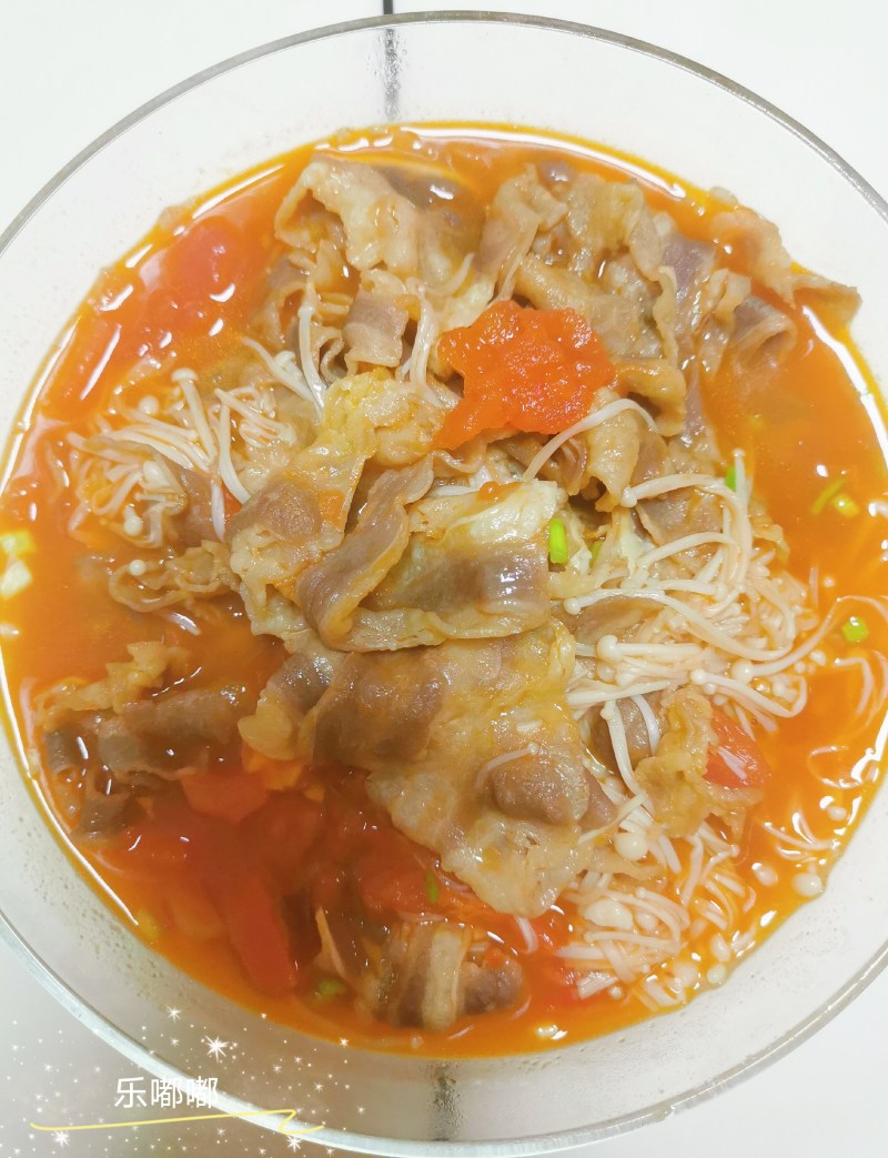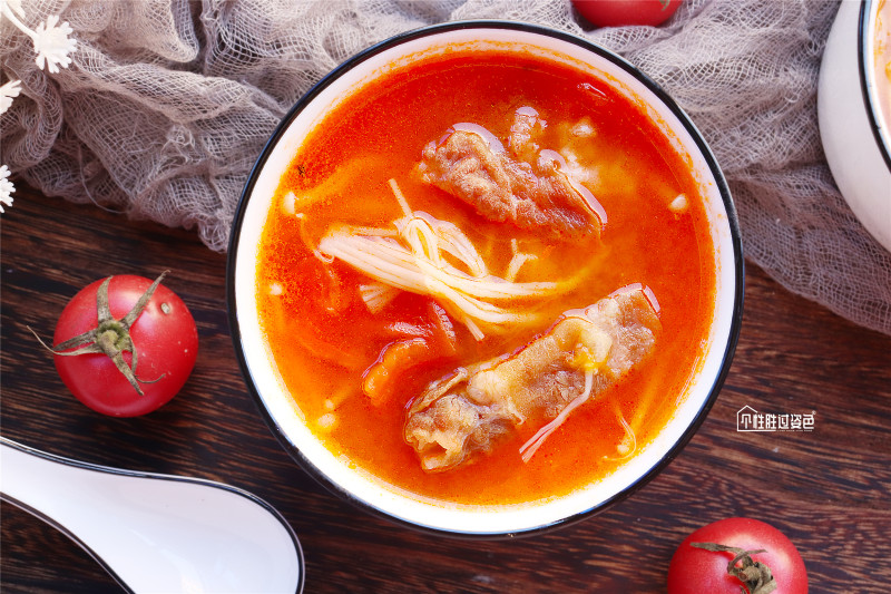 7:用整颗番茄熬的汤底营养又健康,再码上肥牛卷,满满一碗吃到撑哦。