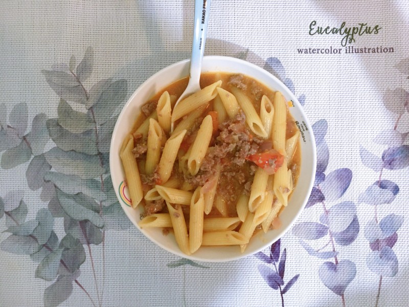 18:意面好后,捞出放到刚刚炒好的牛肉酱中