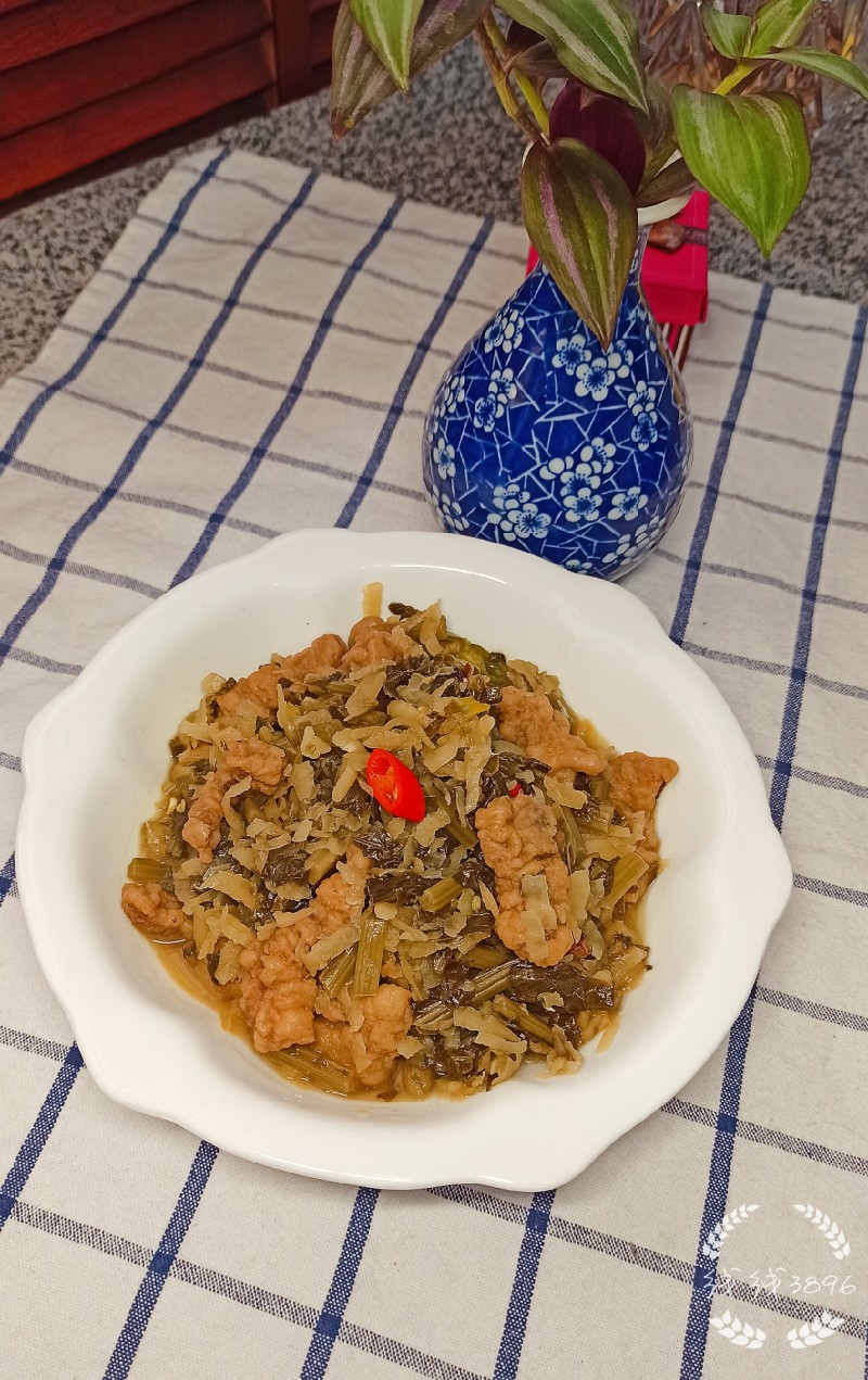 1:芥菜酸菜一碗,炸小酥肉适量,葱姜蒜、青红辣椒适量。
