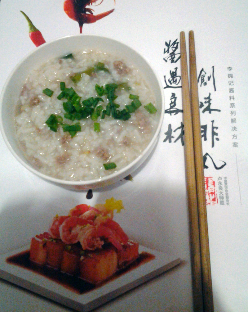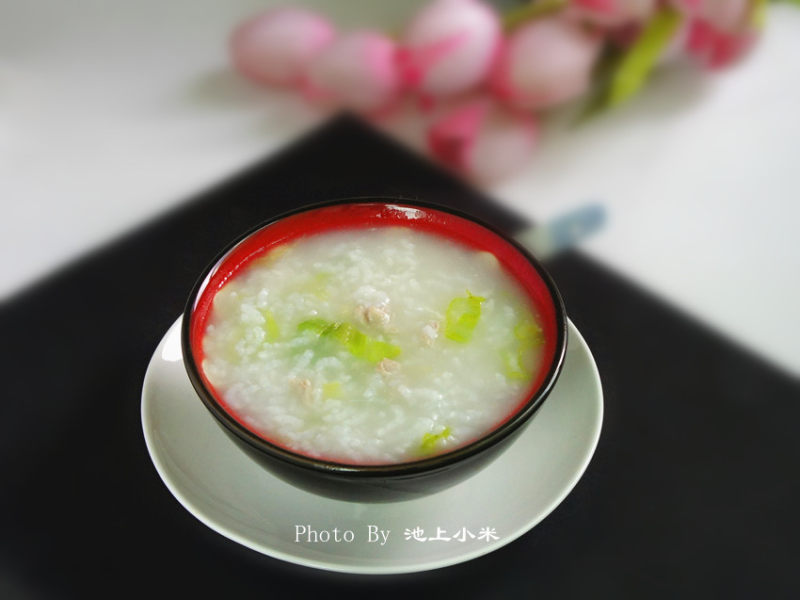 1、猪肉事先腌制一下,可增加肉的风味,不腌也可以的;2、我家喜欢喝较稀的粥,喜欢喝稠些的可以少放些水;3、生菜易熟易发黄,应在最后才放入,事先在粥里加点油,可最大限度保持生菜的碧绿颜色。