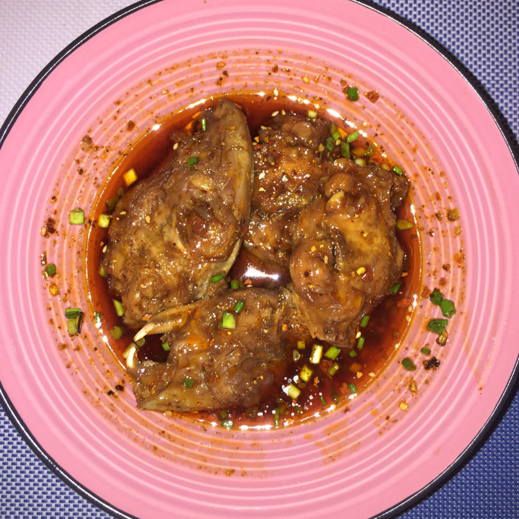 1:兔头对半切开洗净,放烧开的卤水中中火卤半个小时,关火焖15分钟