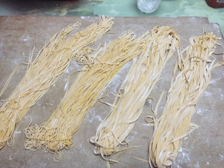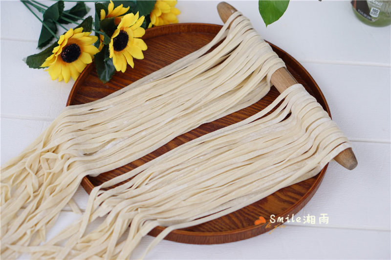 7:放入压面机压成面条,没有呀压面机的可以用刀