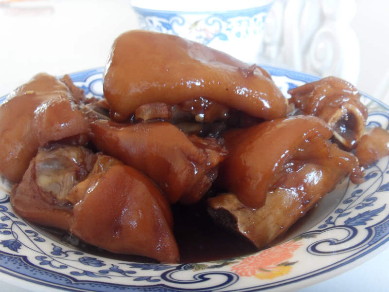 14:煮好的猪蹄有汤汁。