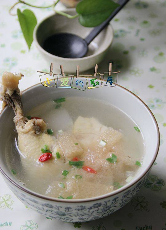 6:在鸡汤快好的前10分钟放入竹荪,鸡汤煲好后只需按加少许盐调味即可