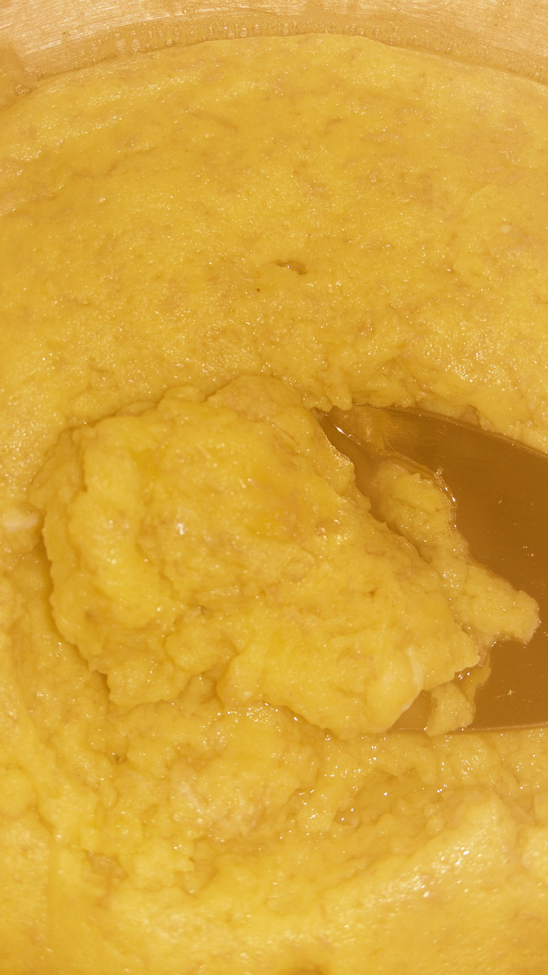 1:把香蕉捣乱成泥,可以用勺子,擀面杖,这一步要有点耐心才行。