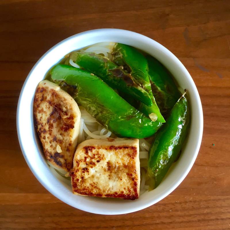 7:将青椒豆腐放在煮好的面条上,盖面就做好啦!
