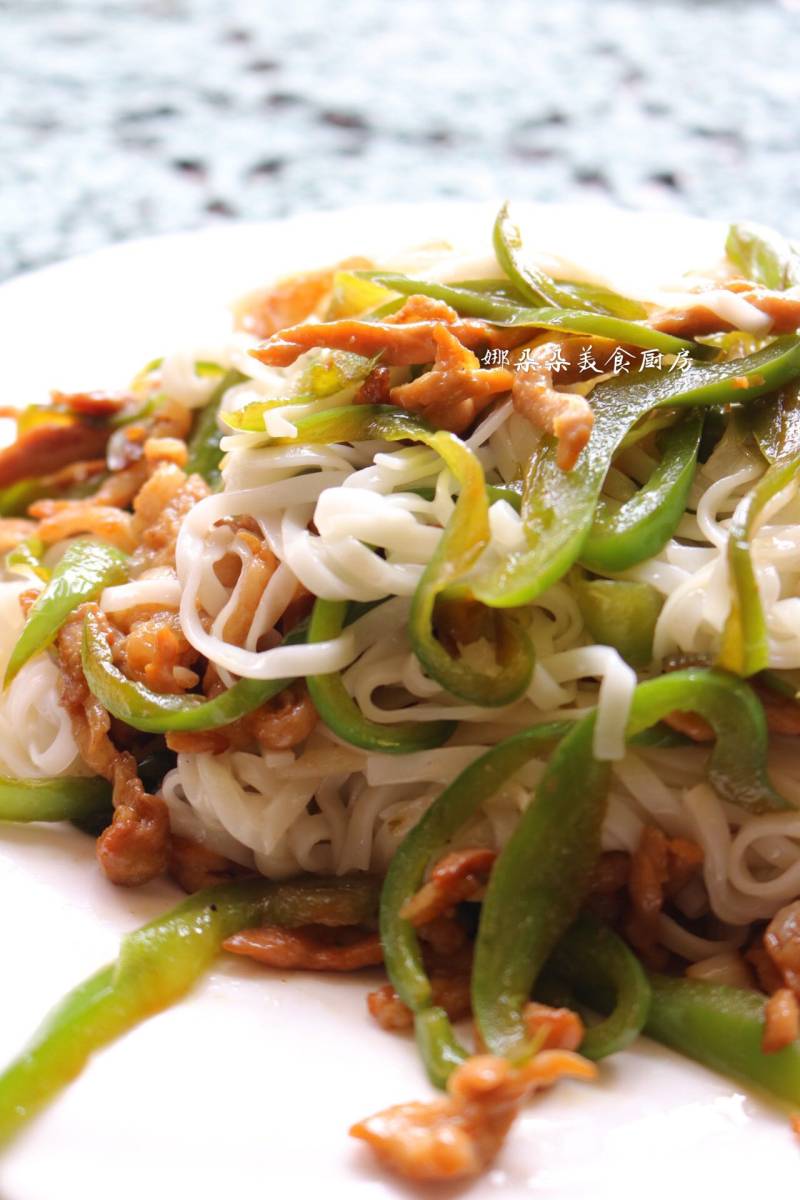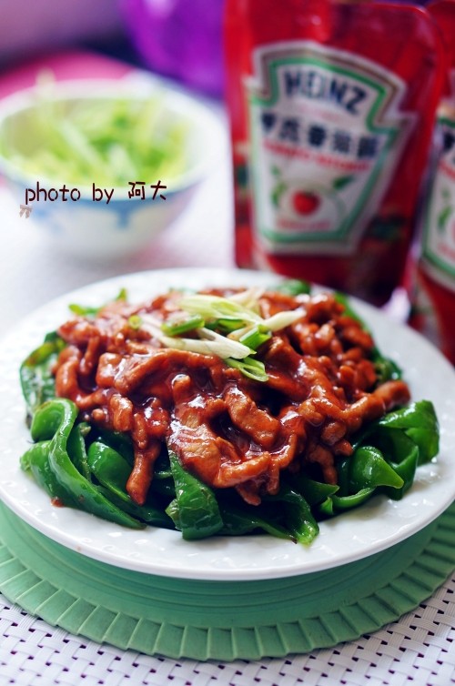 9:然后把炒好的肉丝也盛起来,淋到之前炒好的青椒上就可以了