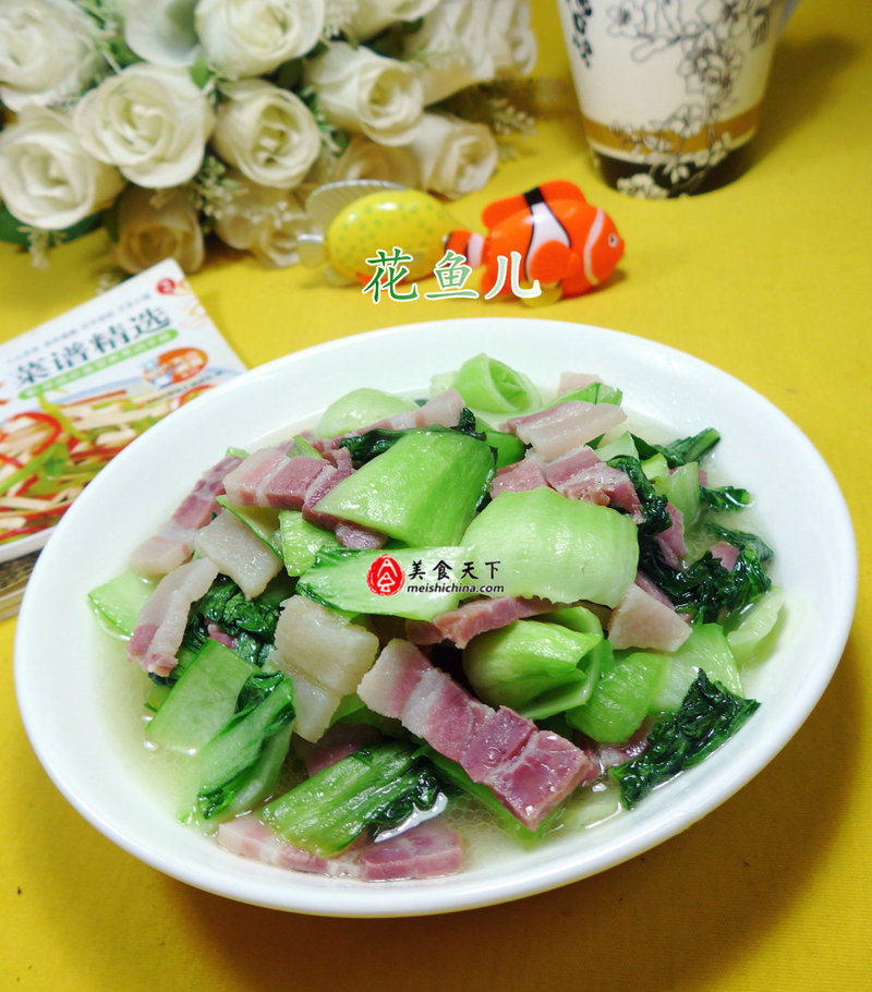 1:食材:咸肉(已切)、花菜(已清洗)、青菜(已洗净切开)、水淀粉