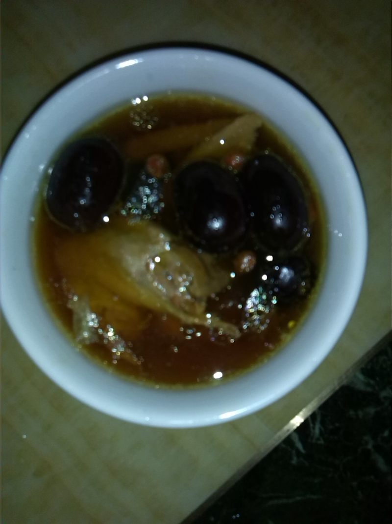 6:煮制时间还剩30分钟时,放入银耳和枸杞子。