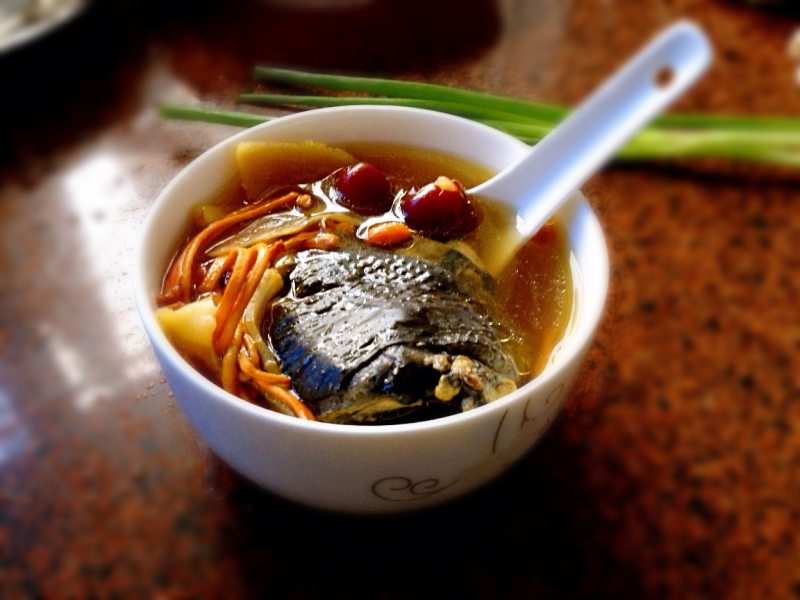 乌鸡半只;冬虫草15g;沙参15g;玉竹15g;淮山20g;枸杞15g;红枣15g;