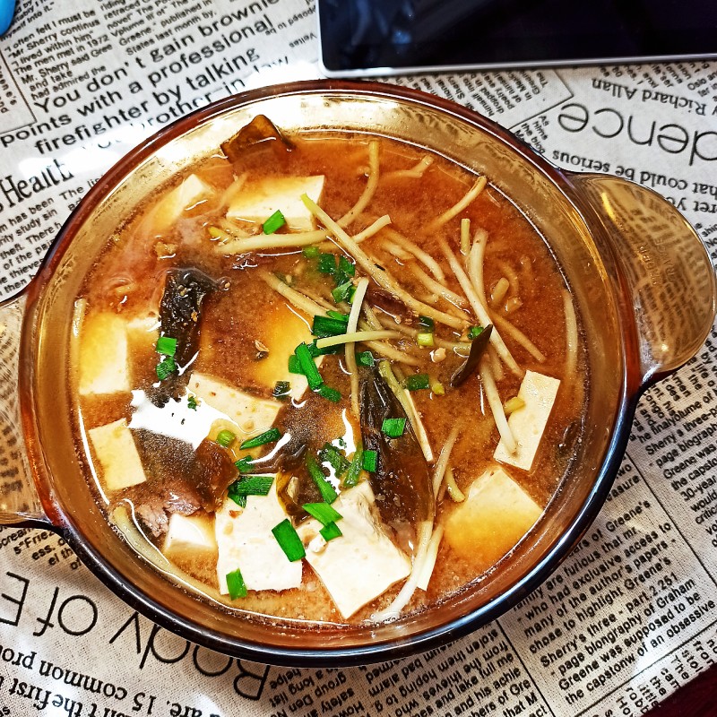 1:清净园黄豆酱50克,加水100克化开。泡发海带结,北豆腐切块,酱牛肉切片,黄豆芽适量。