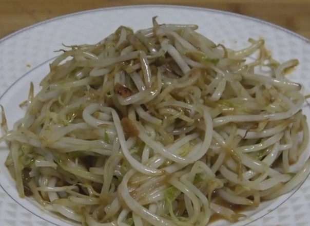 4:倒入豆芽大火翻炒一下,加入盐,酱油,耗油炒至断生即可。