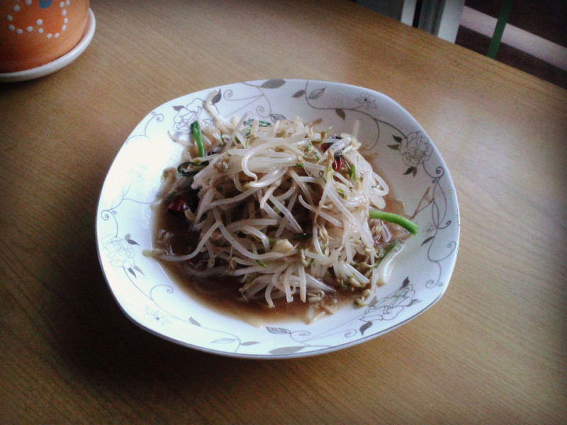 7:炒至豆芽变软,放入少许辣椒油翻炒几下