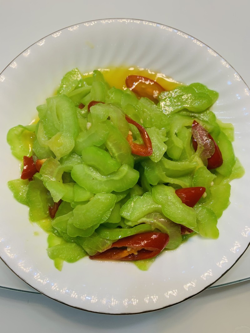8:倒入苦瓜丝继续翻炒