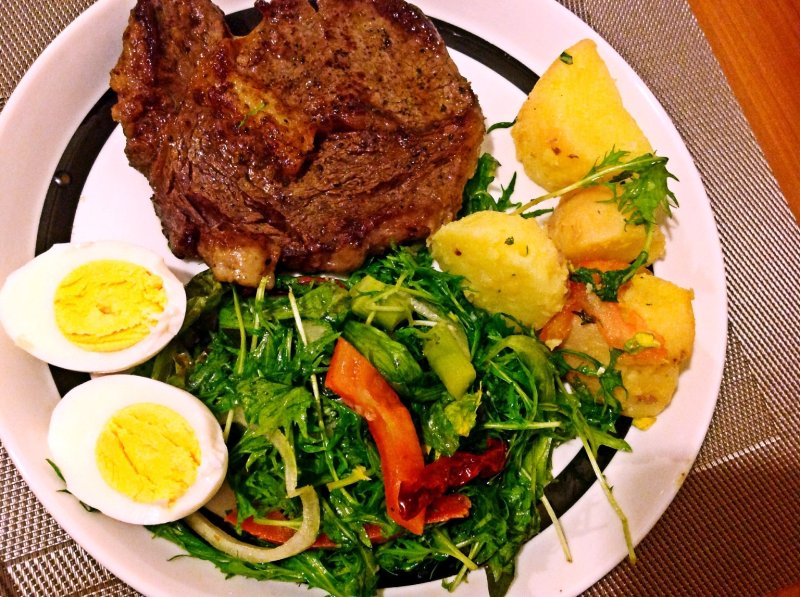 3:然后搭配上自己喜欢的蔬菜沙拉,晚餐就这样开始了。