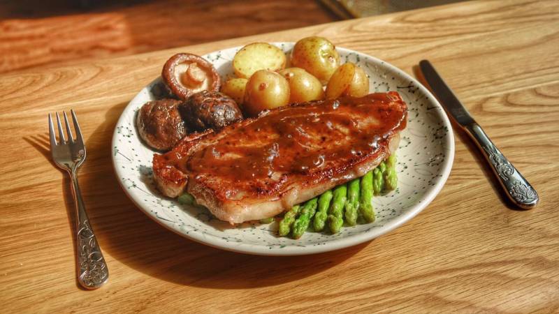 西冷牛排180g;香菇3个;小土豆3个;芦笋8根;