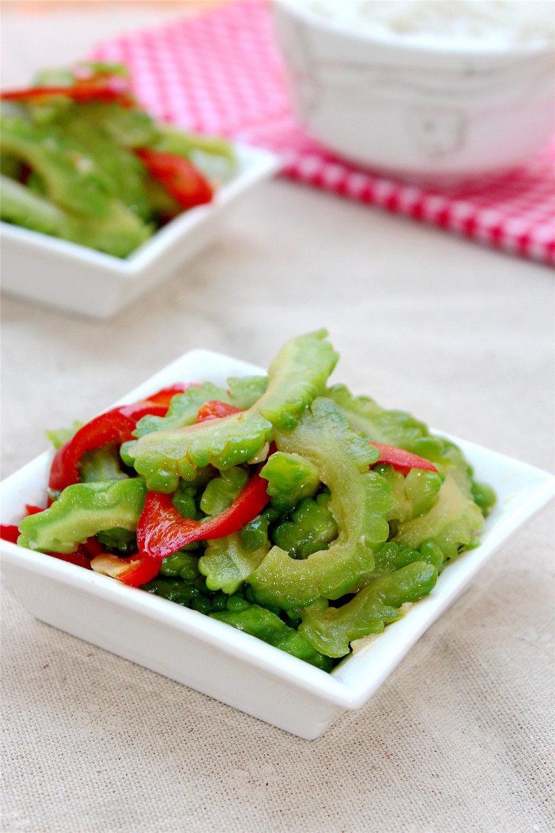 1.苦瓜的品种也很多,不喜太苦可焯水后再炒,喜欢口感硬的就少淋水,待苦瓜未变色时就放辣椒同炒;喜食软烂口感可多淋水翻炒或者焖煮2分钟;2.除了辣椒还可放肉丝、胡萝卜、腐竹等同炒,更俱营养。