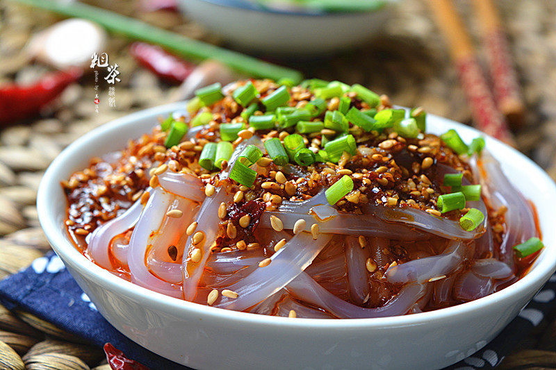 12:凉粉丝做好后,倒入步骤8中的调料汁