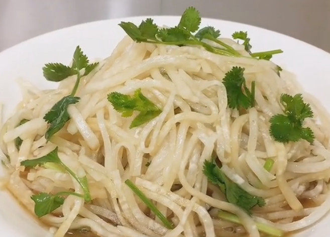 1:萝卜切丝,加适量盐腌制20分钟,然后加入适量凉开水清洗干净,挤干水分。
