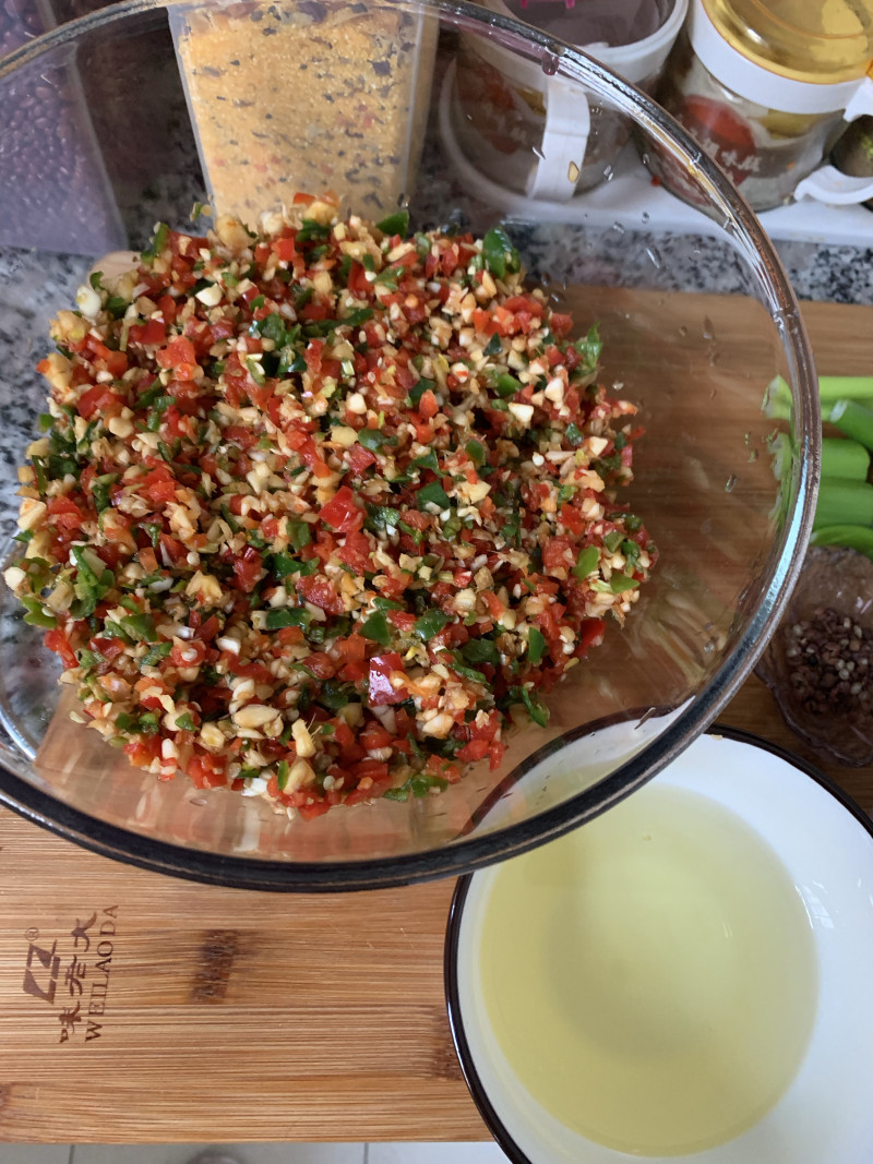 9:料理机、不好用,我用刀剁碎的辣椒和材料