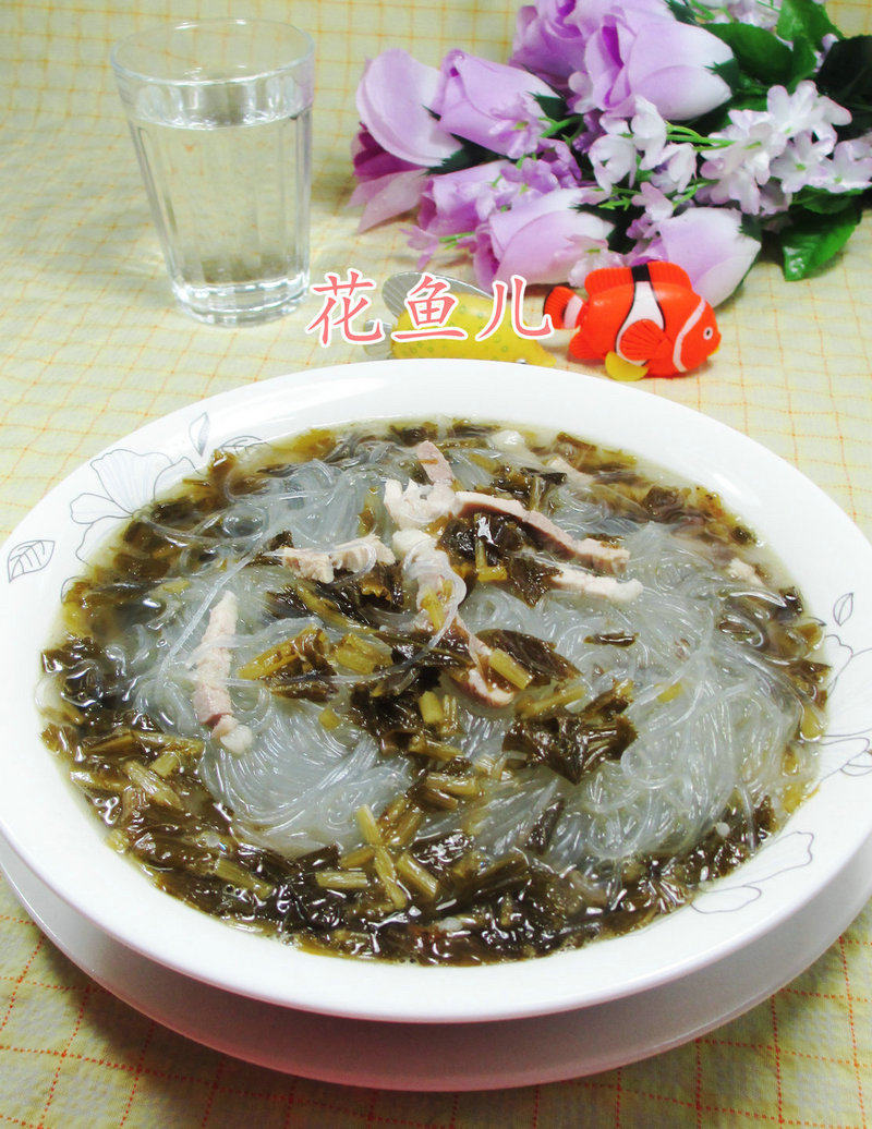 1:食材:熟猪肉(已切丝)、粉丝、雪菜(已清洗切碎)