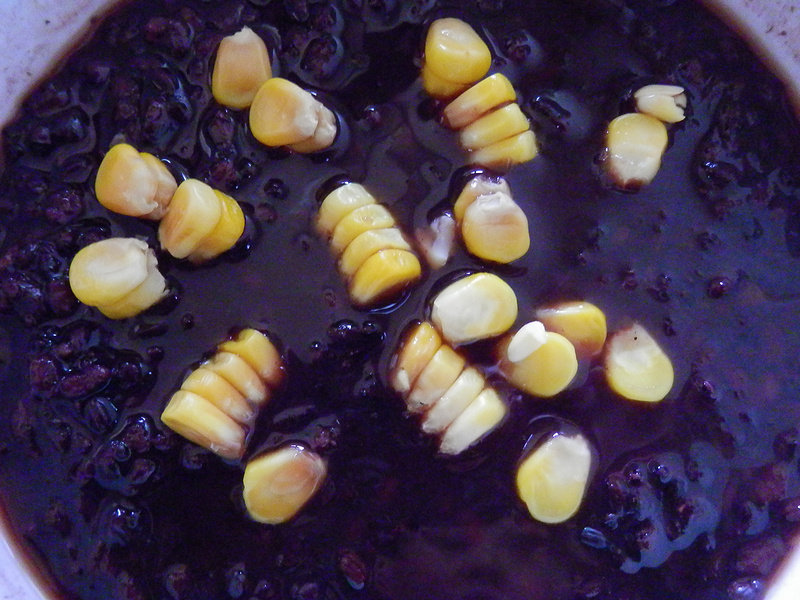 3:加入蒸好的水果玉米粒,略煮就可以出锅