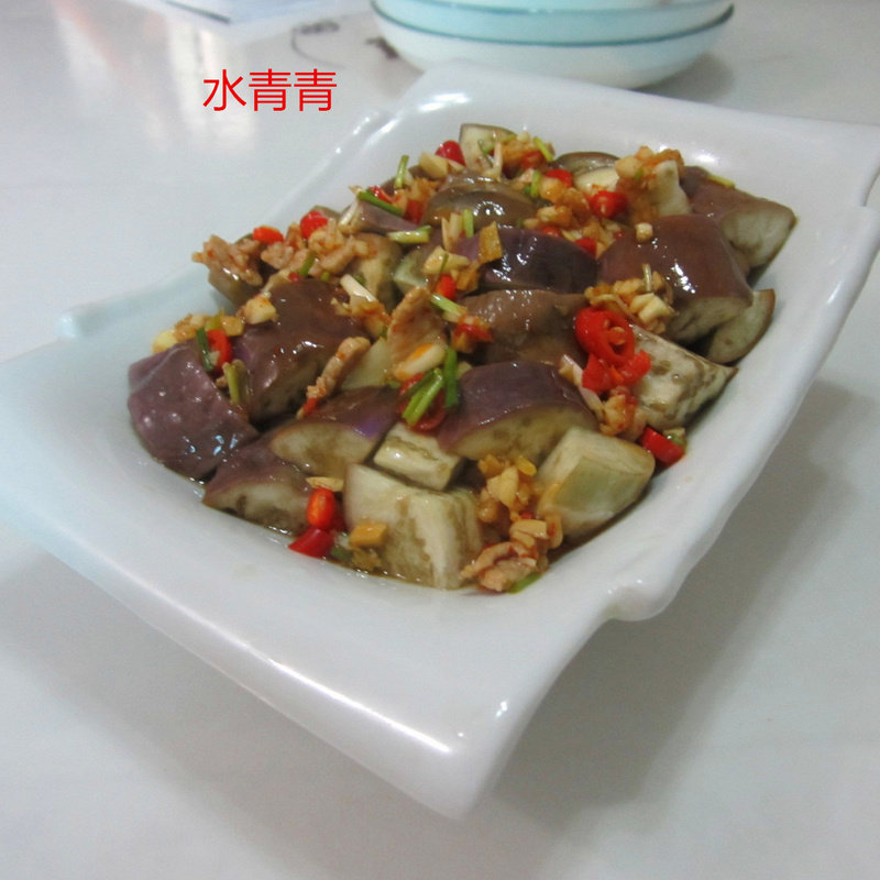 5:茄子蒸软取出,另外准备一个盘。