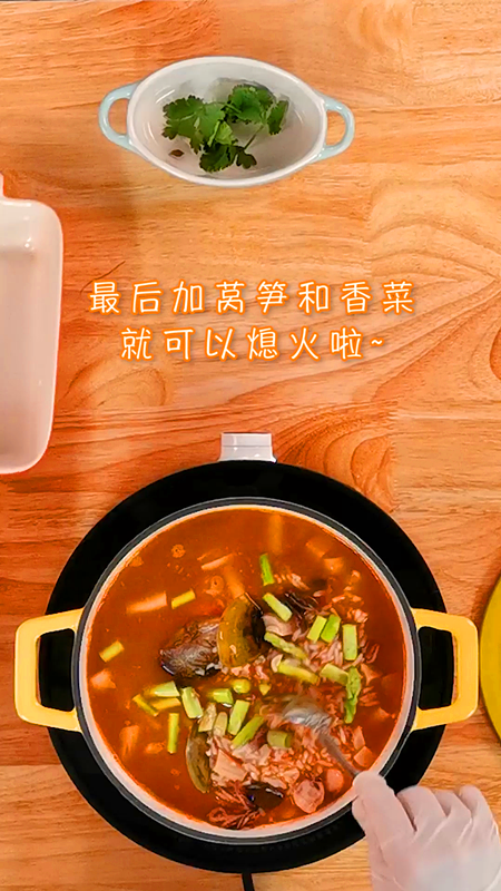 10:最后加入莴笋和香菜,焖一下就可以出锅了