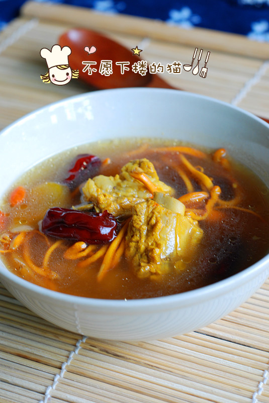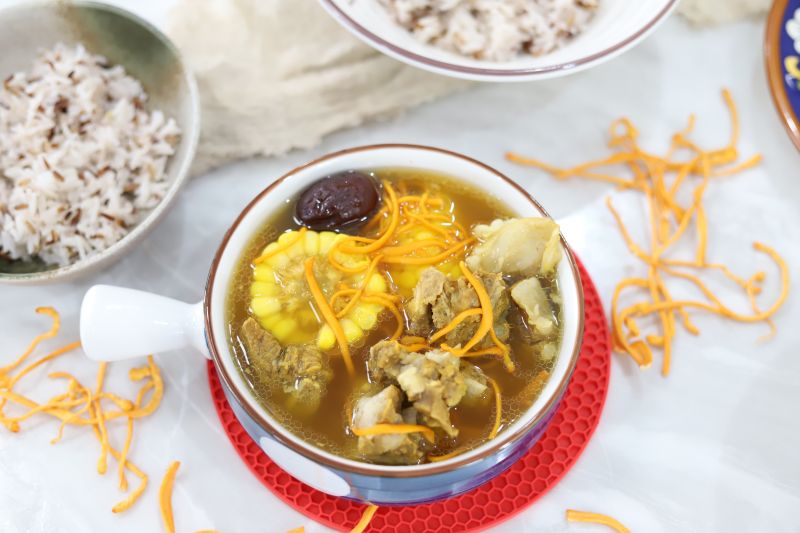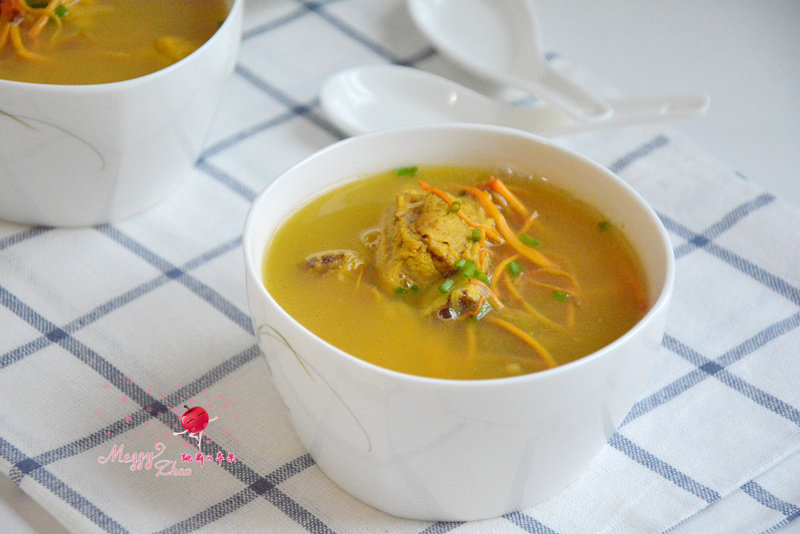 1.排骨提前煮一下,去掉血水,可以令最后的成品汤更加清澈;2.虫草花不宜久煮,出锅前10分钟放入就可以了;3.盐在汤煲好之后再放,可以减少盐的摄入量。