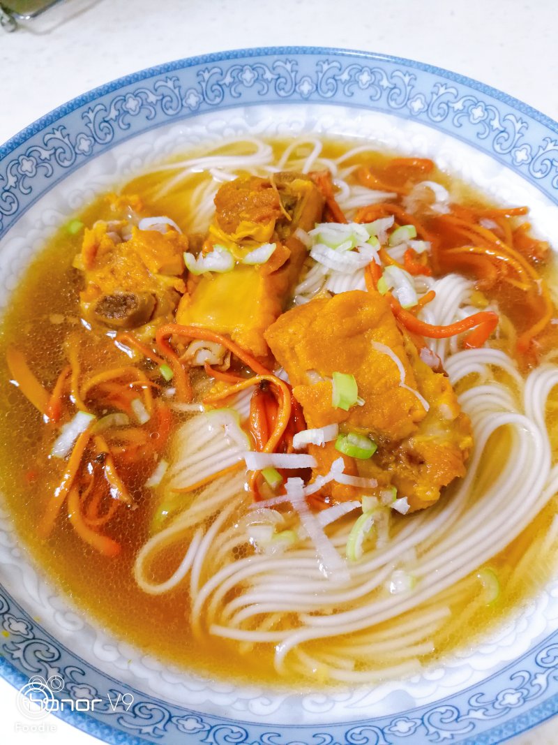 1:昨天炖的虫草花排骨汤,刚好做个汤面。