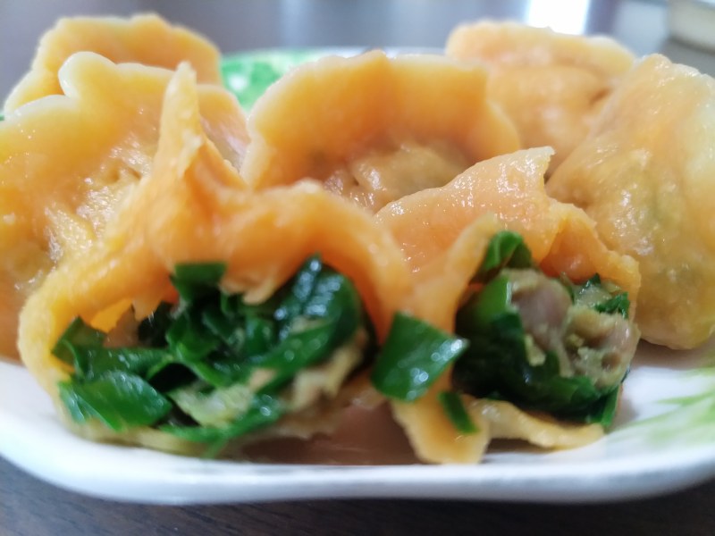 3:韭菜、白菜、鸡蛋、虾皮做馅。