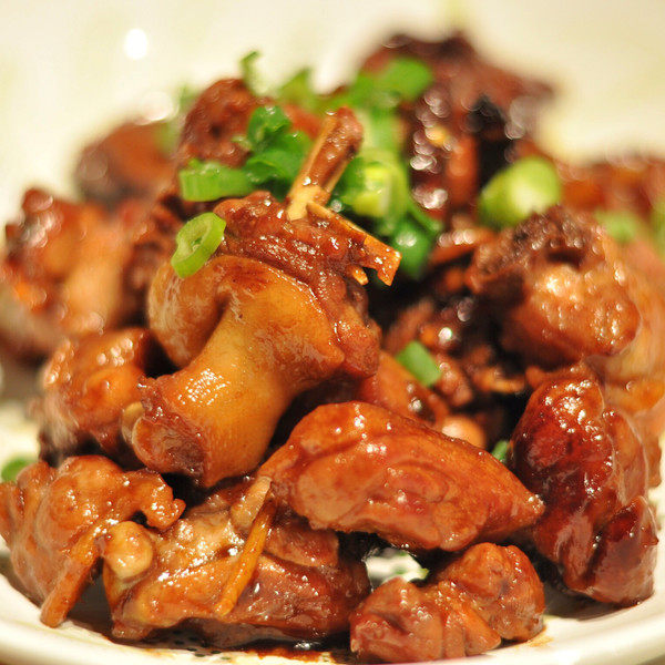 生姜5片;八角1粒;花椒30粒;白砂糖(冰糖)适量;生抽10毫升;老抽5毫升 或 适量;料酒10毫升;油适量;盐适量;干红尖椒5个 或者 适量;小香葱(或香芹菜)适量;