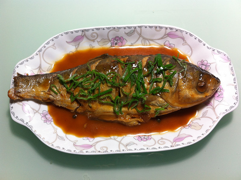 鲤鱼700克;红海椒适量;啤酒2瓶;姜适量;番茄酱适量;白糖适量;
