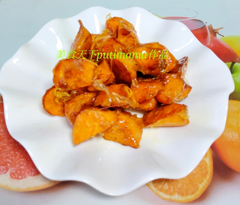 11:这一盘是1个地瓜的量,第一次糖浆熬少了,才为两次挂浆的。