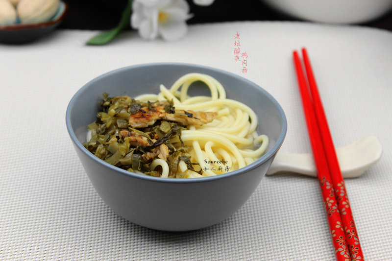 鸡蛋面100克;老坛酸菜100克;鸡汤2碗;