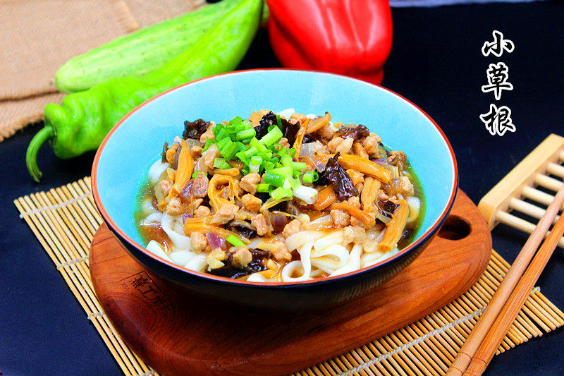 刀削面适量;木耳适量;香菇适量;胡萝卜适量;