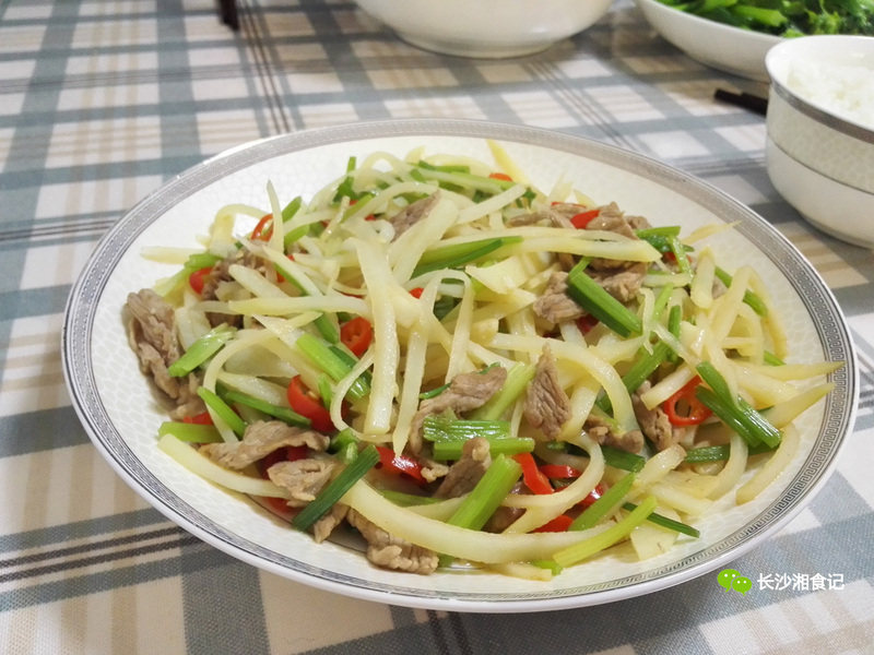 这道菜唯一注意的就是把火候掌握好,别把土豆丝炒的太软,影响口感。