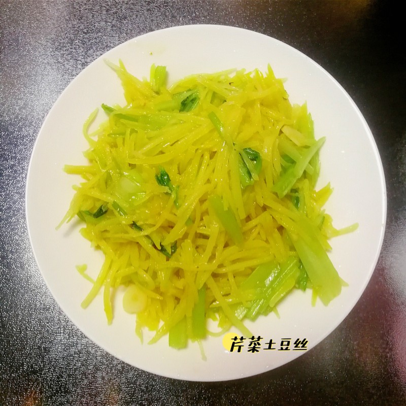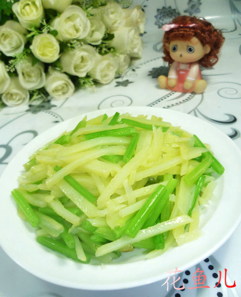 3:土豆炒软后,放入芹菜,盐,五香粉调味