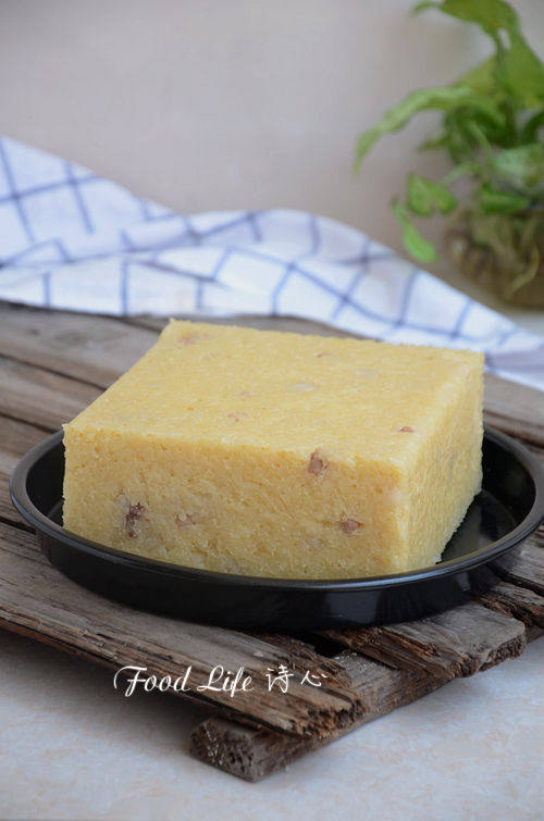 8:蒸熟后脱模,夏天晾凉后记得装起保鲜袋冰箱冷藏保存。要吃的时候,切片蒸熟或者是煎着吃,都非常美味。