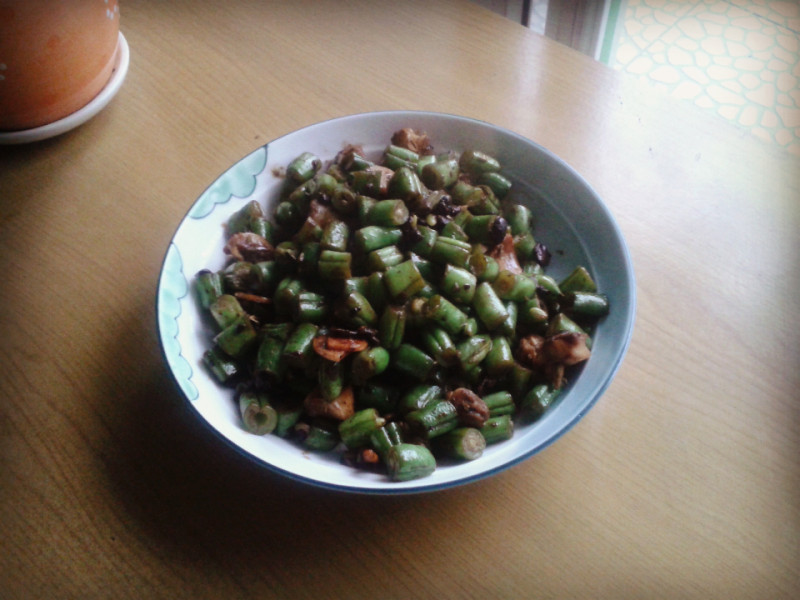 5:锅上坐油,把辣椒花生碎、花椒粉、豆豉依次放入。然后材料调味,出锅