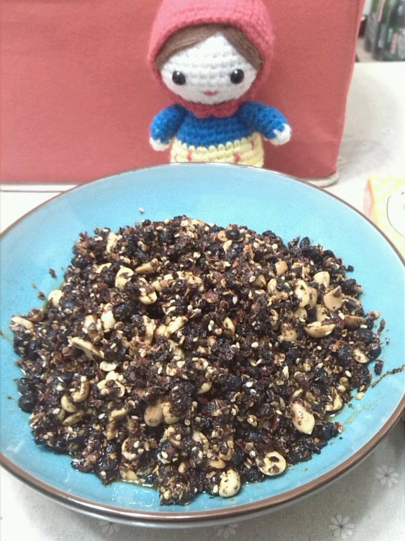 豆豉适量;干红辣椒适量;烤熟花生适量;花椒适量;