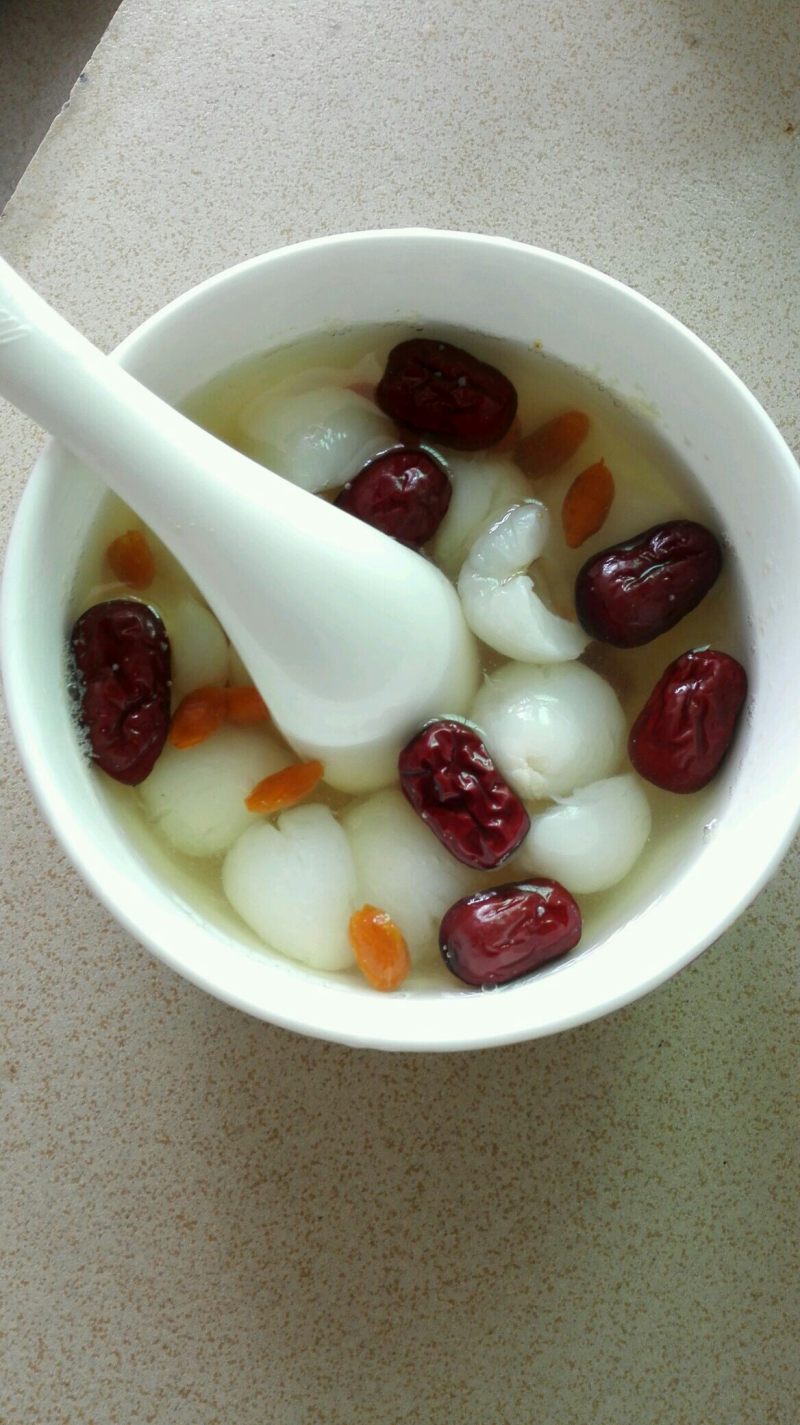 4:锅里烧开,红枣煮入味后加入荔枝肉